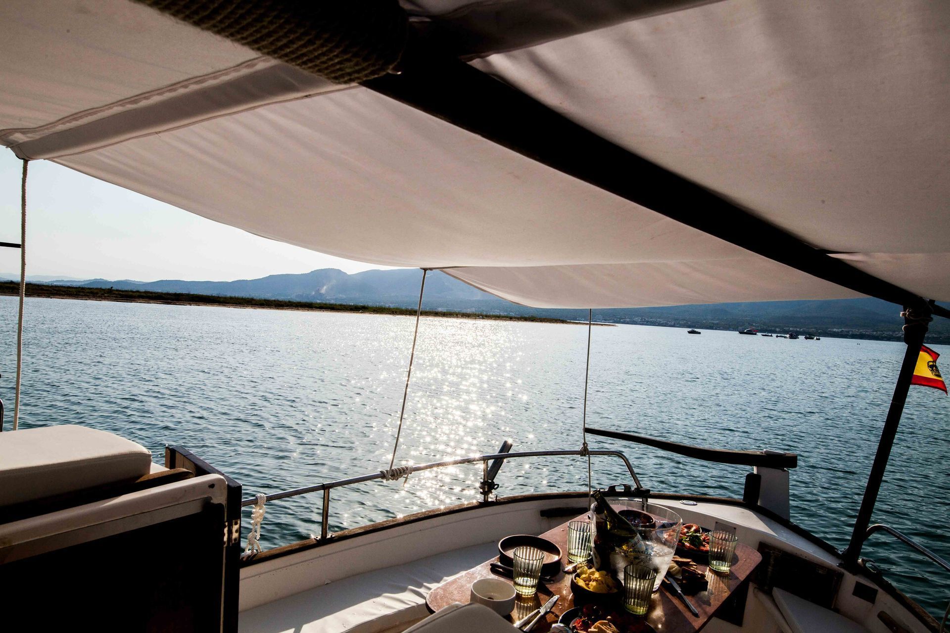 Barco para 10 personas de día. Pueden dormir 10 personas cómodamente, la siesta.